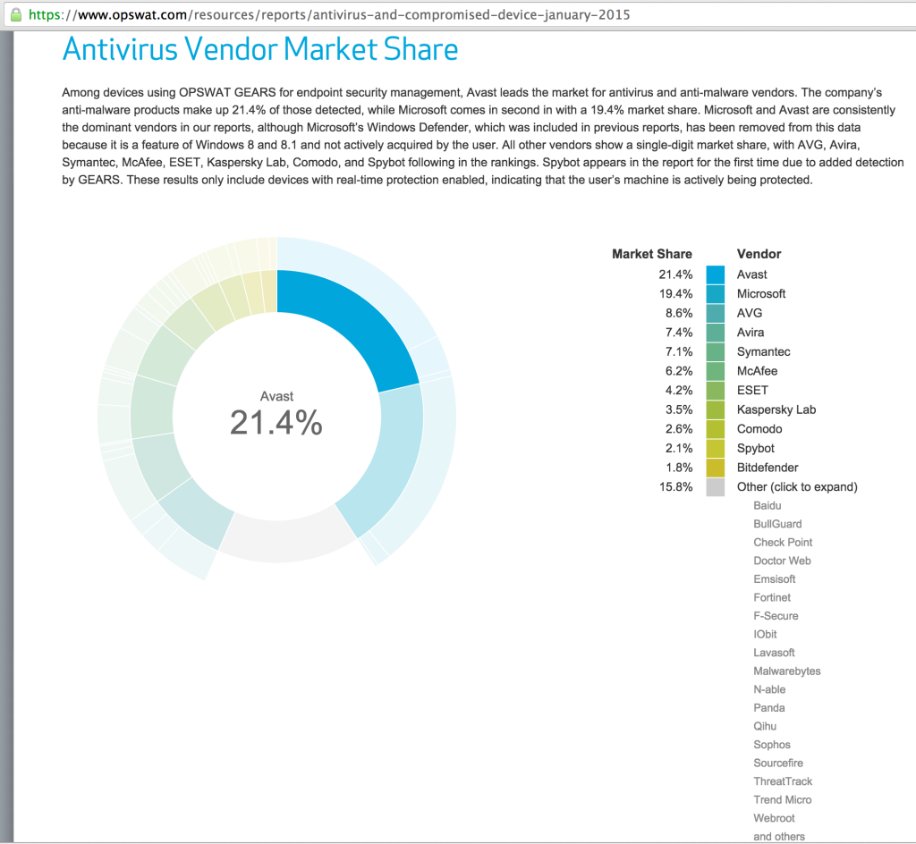 All testing was performed on a virtualized Windows XP SP3 machine (except for Symantec SEP testing which was conducted on a Mac Host). A Kali VM was used to verify operability of pre- and post-encoded reverse shell payloads. I wanted to represent the “market share leaders” in the AV product market so I decided on using the opswat January 2015 report.