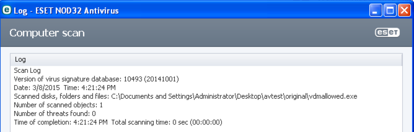 Similar to McAfee, this product did not detect any of the uncloaked malicious test executables despite having up-to-date signatures and exhibiting no errors before or after the scan. Even worse, it actually automatically whitelisted strings_evil.exe! This product was disqualified from further testing.