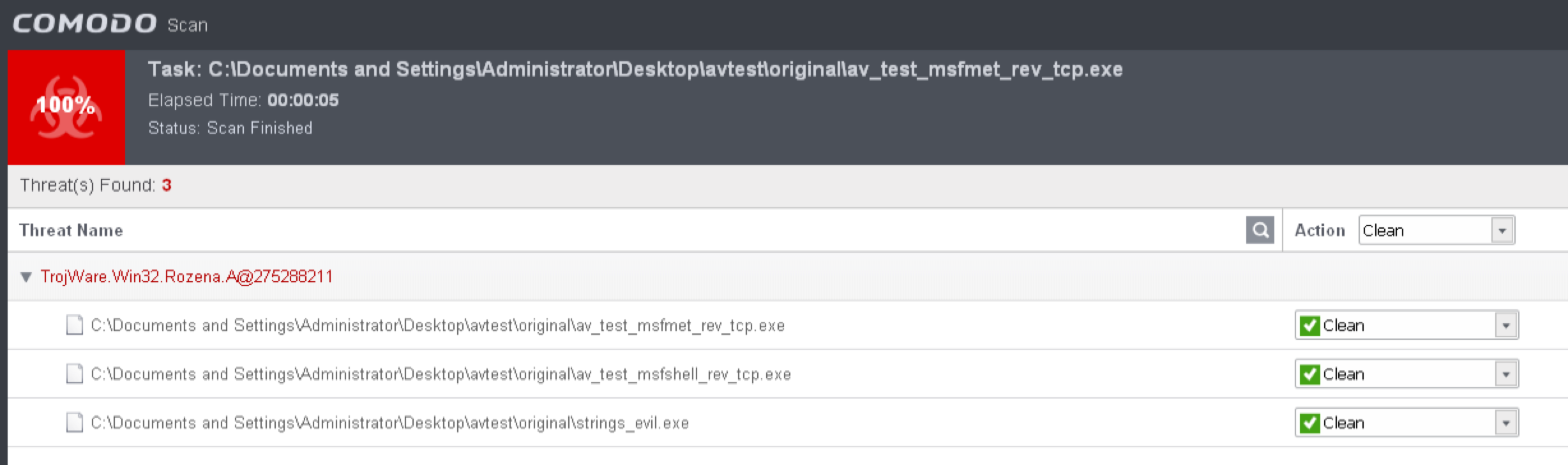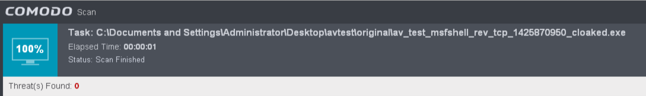 This product successfully detected all four uncloaked test files.
